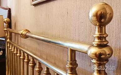 Letto matrimoniale in Ottone artigianale, anni 80 struttura condizioni ottime. il letto è lungo 204 cm, Largo 165 cm, la pediera è alta 81 cm, la testiera 140 cm. Il piano su cui poggia il materasso non è una rete, è un piano rigido in metallo che si incastra in quattro fermi ai quattro angoli NON SPEDISCO Ritiro e Trasporto a carico dell'acquirente ZONA roma PIAZZALE hegel (nomentana-casal de pazzi)