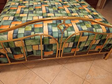 letto matrimoniale in ottone con doghe e materasso