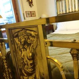 Il letto è in ottone, antico e in buone condizione. Ha delle figure in rilievo sia nella parte superiore che in quella inferiore.