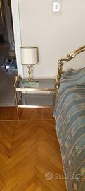Letto matrimoniale in ottone completo di comodini con ripiano in cristallo e bastone tenda medesimo designMisure 190x160 .Ritiro a carico dell' acquirente.