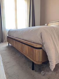 Letto matrimoniale Kavehome, modello Licia, 160x200 cm, struttura in legno. Venduto causa trasloco dopo soli 6 mesi di utilizzo. Condizioni ottime: nessun danno estetico esterno. Presente solo qualche traccia di colla nella parte interna della struttura, non visibile una volta montato. Il letto è attualmente smontato e imballato, con tutta la ferramenta originale inclusa. Prezzo originale di listino: 1.300 € Solo ritiro. Zona Camigliano, Capannori. Prezzo: 900 € trattabile