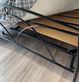 Vendo letto matrimoniale senza contenitore compreso di telaio in ferro battuto e testiera con doghe in legno, (senza materasso) tutto in ottime condizioni usato pochissimo, cambio per letto contenitore