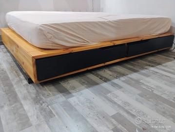 letto matrimoniale basso color legno con cassetti contenitori neri sui due laterali in buono stato misure 1.60 x 2.03 RITIRO A CARICO DELL'ACQUIRENTE
