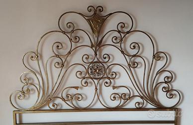 Letto matrimoniale firmato con testate in ferro battuto colore bronzeo e rete ortopedica. rete ortopedica larghezza 170 cm x lunghezza 190 cm altezza da terra 28 cm. Ritiro a Monza, no spedizioni.