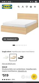 Vendo letto matrimoniale IKEA MALM con contenitore, in ottime condizioni, solido e funzionale. La struttura è completa di testiera e vano contenitore, molto comodo per riporre biancheria, coperte o altri oggetti e ottimizzare lo spazio in camera. Il letto presenta normali lievi segni d'uso, ma nel complesso è tenuto molto bene. Materasso NON incluso nella vendita. Ideale per chi cerca un letto moderno, pratico capiente a un ottimo prezzo. Ritiro a carico dell'acquirente.