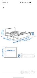 Letto senza materasso malm perfetto di struttura, comprato due anni fa.vwndo per trasloco.Cassetti scorrevoli hanno le porte rotte ed una è staccata ma volendo si possono comprare da ikea diversamente si può tenere così o tenerlo senza cassettoni.