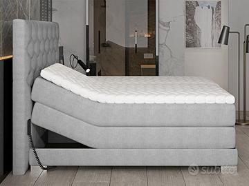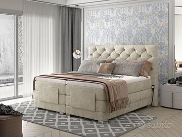 Il letto motorizzato matrimoniale boxspring Manhattan è un prodotto nuovo introdotto nella nostra collezione. Si distingue, insieme al modello Utrecht, in quanto è dotato di due meccanismi elettrici con i quali è possibile abbassare o alzare i materassi ed i top singoli presenti. La funzione principale del letto motorizzato boxspring Manhattan è proprio quella di aiutare ad alzarsi e a coricarsi attraverso il suo movimento elettrico e per questo motivo, a differenza degli altri letti boxspring, non è dotato di box contenitori ad apertura laterale. Manhattan presenta anche il miglior sistema di riposo sul mercato poiché il materasso subito sotto al top non poggia, come solitamente accade, su una rete, ma su un ulteriore materasso a molle: questa sovrapposizione di due materassi rende la sua accoglienza elevata. Manhattan è composto dai seguenti elementi: 2 materassi a molle tradizionali fissi, non asportabili, che fungono da base; 2 materassi a molle indipendenti, sfoderabili e di ottima qualità; 2 top singoli sfoderabili che hanno l’importante funzione di accogliere il riposo. Entrambe le piazze di questo modello hanno tre movimenti differenti verso l’alto e verso il basso, che sono separati e perciò ogni piazza è indipendente dall’altra ed è dotata del suo telecomando; ogni piazza ha 4 sezioni (spalle, bacino, gambe e piedi). Oltre alla sua funzione, il modello Manhattan è costituito da una grande testata trapuntata capitonné alta ben 130 cm che gli dona fascino e grande impatto estetico. Per i numerosi elementi della sua struttura, l’altezza complessiva di dove si dorme è di ben 67 cm, per questo motivo Manhattan è adatto ad ogni persona e in particolare per persone con difficoltà nelle funzioni motorie. Il suo peso complessivo è di 208 kg nella versione 160×200 cm e di 217 kg nella versione 180×200 cm. Prodotto funzionale, di qualità ad un ottimo prezzo! EXCELLENT LINE – GARANZIA DI 2 ANNI COME DA NORMATIVA EUROPEA
