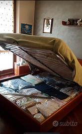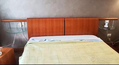 Vendo letto contenitore con rete a doghe marca Napol color ciliegio in ottime condizioni. Nella testata del letto è presente un tubolare sempre in legno con incorporate luci (uso abat-jour) alle cui estremità sono fissate due mensole di cristallo. Il letto misura 2 m e 23 cm dalla testata ai piedi del letto e 2 m e 83 cm il tubolare. La rete ha misure standard (190x160 cm). Non si effettua spedizione. Il ritiro deve avvenire personalmente dell'acquirente.
