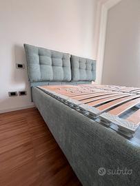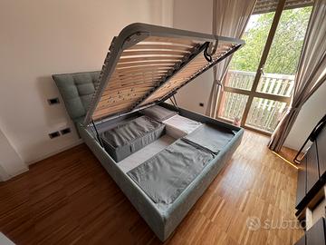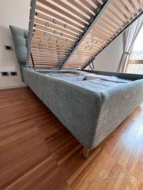 Letto in ottime condizioni. Rete a doghe (regolabili) 160x190. Contenitore, piedini 15cm in legno (originali sono da 10 cm in plastica), rivestimento sfoderabile e lavabile. No spedizione. Prezzo non trattabile