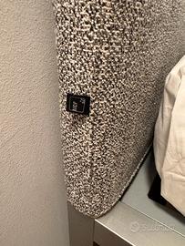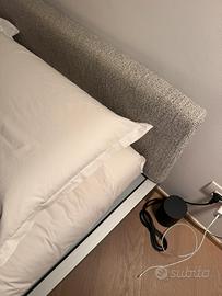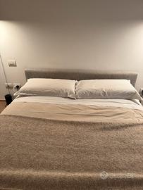 Letto matrimoniale di MDF Italia in alluminio con testiera bassa leggermente imbottita e rivestita. Dimensioni 160x200x25