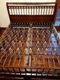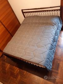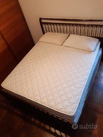 Letto matrimoniale in legno 210cm x 174 cm (anni '60). 2 reti singole metalliche a molle 195cm x 84cm x 24cm (anni '60). Materasso matrimoniale a molle 190cm x 160cm x 20cm, produzione italiana con lato estivo e lato invernale (acquistato nel 2010). Altezza letto + rete + materasso = 64cm. Piumone matrimoniale colore grigio marca Cassera interno 100% poliestere esterno 100% cotone (anno 2000 ca.). Coprimaterasso matrimoniale misto cotone / poliestere (2018). Coprirete matrimoniale misto cotone / poliestere (2018). Cuscino ortopedico + copricuscino. Cuscino morbido + copricuscino. PS: sul materasso alcune macchie da usura. La struttura del letto presenta alcuni punti di usura del legno. Ritiro a carico dell' acquirente !