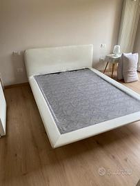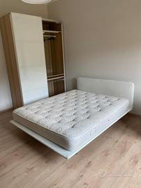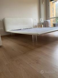 Letto matrimoniale moderno in ecopelle con piedi in plexiglass. Rete cm 160 x cm 195. Come nuovo. Materasso usato compreso nel prezzo se interessa.