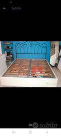 Letto matrimoniale con testata in ferro battuto, satinato nero, con contenitore molto capiente, con doghe regolabili.