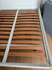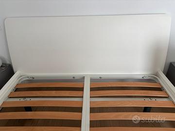 Causa trasloco, vendesi letto matrimoniale in legno laccato bianco opaco, cm 173x209 comprensivo di rete a doghe ortopedica. Testiera in legno, piedini laccati opaco grigio. No contenitore