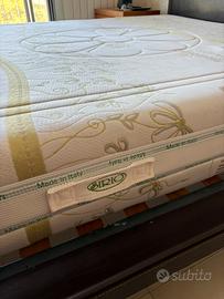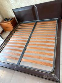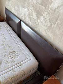 Letto matrimoniale modello Limage di cuoio colore testa di moro lavorato con cuciture a vista, più materasso memory foam, misure 160x190 con rivestimento anallergico sfoderabile marca Sirio. Altezza letto cm 25, materasso cm 21. Tutto in ottimo stato.