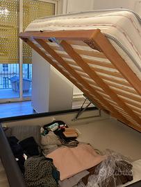 Letto matrimoniale moderno con struttura in pelle nera e testiera imbottita, dal design elegante e curvo per un maggiore comfort. Rete robusta e materasso incluso in ottime condizioni, usato pochissimo. Il materasso è alto, ortopedico e sfoderabile, perfetto per garantire un riposo di qualità. Ideale per camera da letto contemporanea. Misure standard matrimoniali. Ritiro a carico dell’acquirente..
