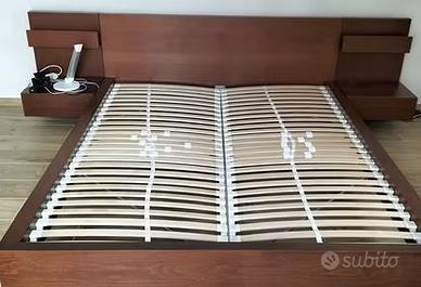 Letto Matrimoniale, color Noce, con comodini, Rete doghe in legno e materasso. Modello Ikea MALM Ritiro su San Nicola La Strada, a cura e spesa acquirente.