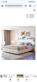 Letto imbottito 160x200cm con USB, matrimoniale, con contenitore con LED, similpelle, struttura letto, bianco lucido.