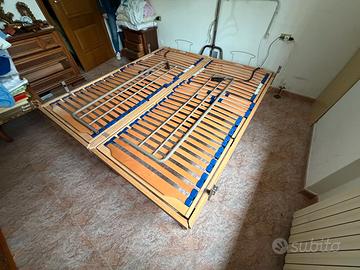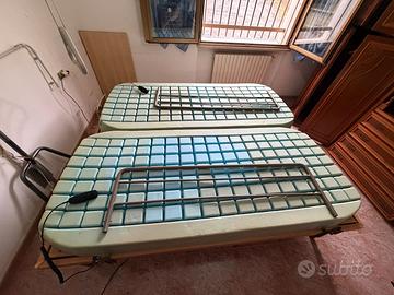 Letto, funzionante e ben conservato, è formato da 2 reti a doghe regolabili in base al peso, motorizzate, da 90 x 200 cm con piedi altezza 40 cm. Le reti sono indipendenti, ciascuna con telecomando. Il letto è provvisto di kit di unione delle reti, sponde laterali, ganci ferma materasso, acquistato nel 2021 in ortopedia (con fattura, dimostrabile) ed utilizzato per circa 3 anni, vendo causa inutilizzo.