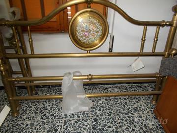 Letto matrimoniale ottone Barel. Trattasi di articolo nuovo con qualche segno dovuto al tempo di giacenza in magazzino. Medaglione centrale dipinto a mano.