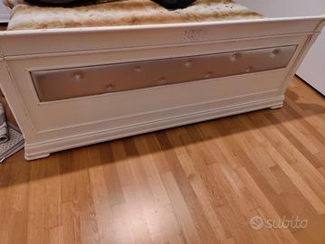 regalo struttura letto matrimoniale con inserto in ecopelle argento e Swarovski, su testiera e pediera rimovibile e sostituibile lasciando lo spazio vuoto o rivestendo il legno ora argentato