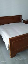 letto matrimoniale con rete con doghe. Due comodini tutto realizzato artigianalmente.