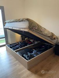 Letto matrimoniale di grandi dimensioni, con una struttura robusta e un design elegante. - Dimensioni: 2 metri x 2 metri. - Materiali di alta qualità per una maggiore durata. Letto Premium: 2 metri per 2 metri, materiali di alta qualità Double-face: lana + cashmere per l'inverno / lino + cotone e isolamento termico in gel per l'inverno Materasso di alta qualità (200x200x32 cm) con due cuscini in gel (lunghi 90 cm) con lenzuola in lino per l'estate con un caldissimo piumino canadese per l'inverno Gli angoli sono stati danneggiati dal nostro gatto La base contenitore sotto il materasso è inclusa e ha una capienza molto ampia
