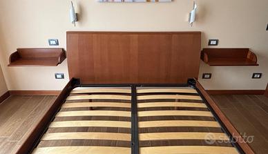Letto matrimoniale con rete a doghe : cm 173 x 220 , n. 2 comodini sospesi cm 65 x 25, il tutto in legno dí ciliegio. trasporto a carico dell’acquirente