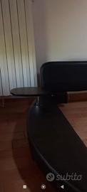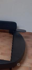 letto matrimoniale rotondo con la comodità di poter mettere un materasso classico misura 190x200, compreso di doghe in legno e due mensole poggia cellulare... è un letto molto basso stile futon...ricoperto in finta pelle colore nero....per qualsiasi informazione non esitate a contattarmi....