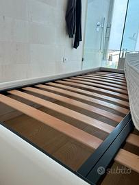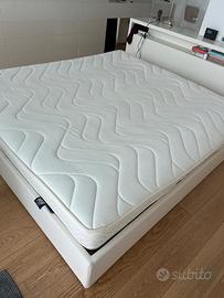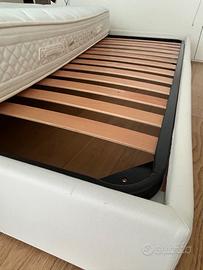 Vendiamo elegante letto matrimoniale sommier con struttura solida e rivestimento in tessuto bianco, realizzato su misura. ✔️ Misura esterna importante (180x200king size) ✔️ Struttura robusta e stabile ✔️ Doghe in legno in ottimo stato ✔️ Linea pulita e moderna, adatta a diversi stili di arredamento Il letto è stato sempre utilizzato con cura ed è in ottime condizioni generali. 💡 Ideale per chi cerca una soluzione di qualità e duratura, con un design essenziale ed elegante. 📏 Compatibile con materassi di dimensioni standard o realizzabili su misura. Possibilità di includere il materasso (opzionale) marchio Simmons-top di gamma, lato seta e lato lana di cammello. Non sfoderabile. ❗️Ritiro a carico dell’acquirente, disponibile da fine aprile 2026.