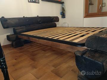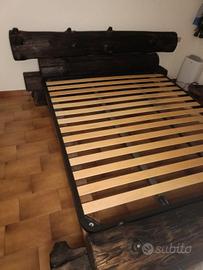 letto matrimoniale rustico realizzato atigianalmente con abete antico.