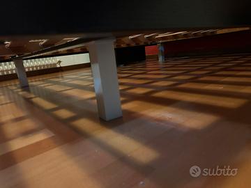 Mobili Made in Italy, usati ma in ottime condizioni, letto matrimoniale effetto sospeso con rete 160x200, misure base 170x220, testiera 255x35, colore wenge con venature. Comodini a due cassetti 64x52.