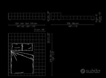Dimensioni complessive cm 264x279; altezza letto cm 25; altezza testa letto cm 45.