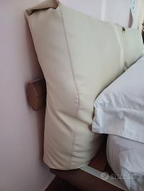 Vendo bellissimo letto matrimoniale TOMASELLA, made in Italy, per materasso da 200x160. La struttura è in legno di rovere, acciaio, e testiera in ecopelle beige, sfoderabile. Il letto è seminuovo, tenuto scrupolosamente e con cura. Vendo per cambio casa e misure.