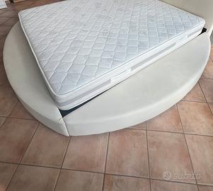 Letto matrimoniale tond pelle bianca e materasso