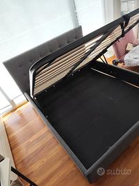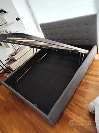 letto matrimoniale con testiera in tessuto grigio con cassettone 170x200