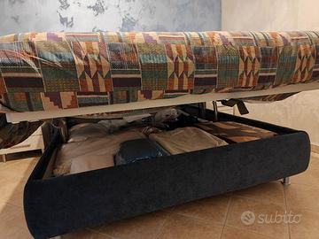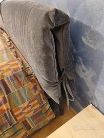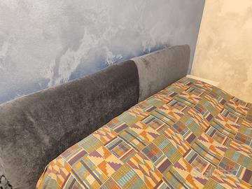 Vendo letto matrimoniale con cassettone e meccanismo di blocco orizzontale. Imbottitura microfibra color blu carta zucchero. Disponibile dal mese di giugno. No materasso