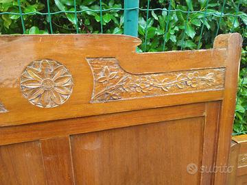Testiera e pediera di letto matrimoniale antico, primi del 900, in legno con decori ed intarsi fatti a mano. Possibilità di utilizzo anche come due letti singoli. Non spedisco.