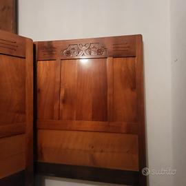 Vendo un letto matrimoniale in ciliegio dei primi del 900, legno massiccio, costituito da due testate di uguali altezza, decorati come da foto. Compreso di n. 2 comodini.