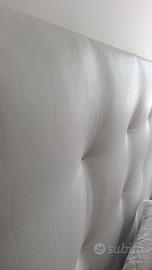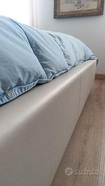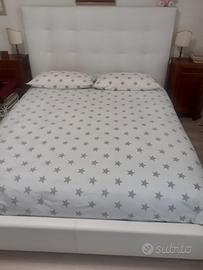 Letto matrimoniale in vera pelle bianca. Praticamente nuovo, vendo per guadagnare una stanza. Comprato in un mobilificio a Pordenone. Non è contenitore. Non sono incluse reti e materassi. Altezza testiera 175. Per materasso 160 per 200.