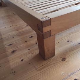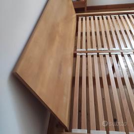 Tutta la srtuttura è in faggio americano naturale trattato a cera d'api. Tutti gli incastri sono in legno, non ha le doghe, le sue misure sono: 210 per 180.