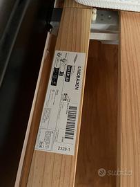 Letto a doghe doppie Ikea Lindboden con una struttura molto elegante. Utilizzato esclusivamente come letto per gli ospiti, quindi è in ottime condizioni. Inclusi due materassi Natalini Relax da 80 x 200 cm. L'altezza della parte superiore della testiera è di 140 cm dal pavimento. Il letto si trova a 75 cm dal pavimento.
