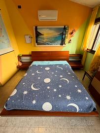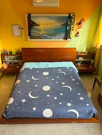 Letto matrimoniale in legno di ottima fattura, con materasso matrimoniale ( 160 x 190 cm). Con reti a doghe in legno. altezza reti da terra: 30cm altezza testiera (leggermente ricurva): 80 cm profondità: 232 cm larghezza: 320 cm prezzo trattabile No spedizione - No consegna a domicilio