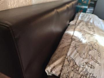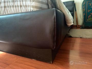 Vendo letto matrimoniale in vera pelle , di qualità assoluta, ha 20 anni ma si inserisce perfettamente in un contesto moderno, l'unico difetto è un angolino e lo si può vedere nella foto. Il letto misura 220x180 , il materasso è compreso 200x160, la rete è in doghe di ottima qualità. Vendo esclusivamente per cambio arredo. Il tutto è già smontato e imballato pronto per essere facilmente rimontato.