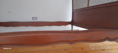 Letto con testiera in stile vintage con cornice in legno massello sagomata e inserto in paglia di Vienna. Comprese le 2 reti