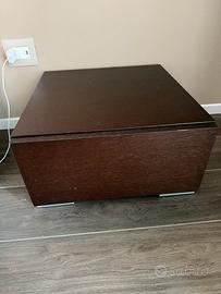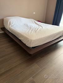 Letto matrimoniale in legno massello con due comodini con cassetto, adatti da posizionare a terra o sospesi. Struttura artigianale in ottime condizioni.