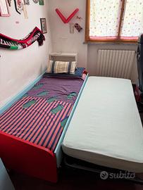Letto singolo con secondo letto estraibile, semi nuovo, ideale per cameretta o ospiti.