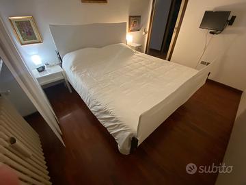 Il letto è progettato con la consulenza del professor Zerbi, noto ortopedico con il quale aveva già collaborato per la realizzazione di un letto d’ospedale. Il compito che qui si propone, è realizzare un sistema innovativo che possa fornire diverse misure senza interferire nella struttura. Il progetto vuole rendere massima l’aerazione del sistema supporto-materasso e minimo l’effetto amaca trasversale. Per tale motivo le barre longitudinali sono state scelte sottili ed i materiali sono stati realizzati in compositi avanzati. Il calcolo strutturale per tali elementi e il prototipo è stato fatto nel laboratorio CSI della Montedison di Milano. Il piano di riposo diventa un insieme di barre a sezione rettangolare in vetroresina con terminali in PVC trasparente e morbido, disposte come l’allungamento del corpo. Privo di telaio perimetrale, si può variare a piacere la lunghezza delle travi ed il relativo numero di barre, lasciando quindi una grande libertà di dimensioni. Il tutto è collegato ad un telaio di forma a U flessibile in misura tale da tendere i rivestimenti a camicia delle due testate, formate da un telone a sacco grezzo ricopribile a sua volta con tessuti sfoderabili dei colori desiderati.