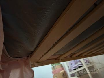 Il letto è in ottime condizioni, facilmente smontabile con doghe in legno. Il materasso è incluso.