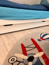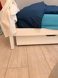 Letto singolo a capannina misure standard montessori in legno bianco con doppio cassettone e tenda fatta fare su misura